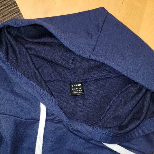 schönes Kapuzenshirt (Art Hoodie) im maritimen Look (dunkelblau mit weissen Streifen auf den Ärmeln) in der ca. Gr. S/M ( L steht drin, ist aber kleiner) von SHEIN - Kordelzugbändchen am Ausschnitt - Material 100% Polyester - das Shirt fühlt sich sehr warm, weich und leicht an