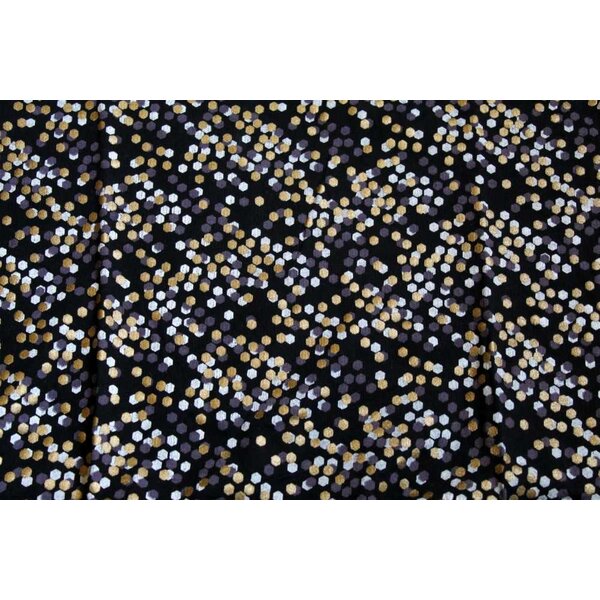 Bedruckt ist es mit kleinen Sechsecken in den Farben weiß, blau und gold.