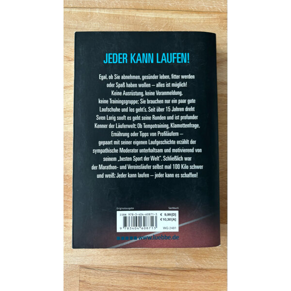 Früher war er 100 Kilo schwer und null in Form - heute läuft Sven Lorig Marathon und kann sich ein Leben ohne Laufen nicht mehr vorstellen. Für ihn ist es der beste Sport überhaupt: Er macht fit, schlank und baut Stress ab. Seit 10 Jahren dreht der sympathische Moderator sooft es geht seine Runden und ist profunder Kenner rund ums Thema: Ob Tempotraining, Klamottenfrage, Ernährung oder Interna aus der Profiläuferwelt - gepaart mit seiner eigenen Laufgeschichte schreibt Sven Lorig ein unterhaltsames, erhellendes und motivierendes Buch für alle Anfänger und bereits Abhängigen.