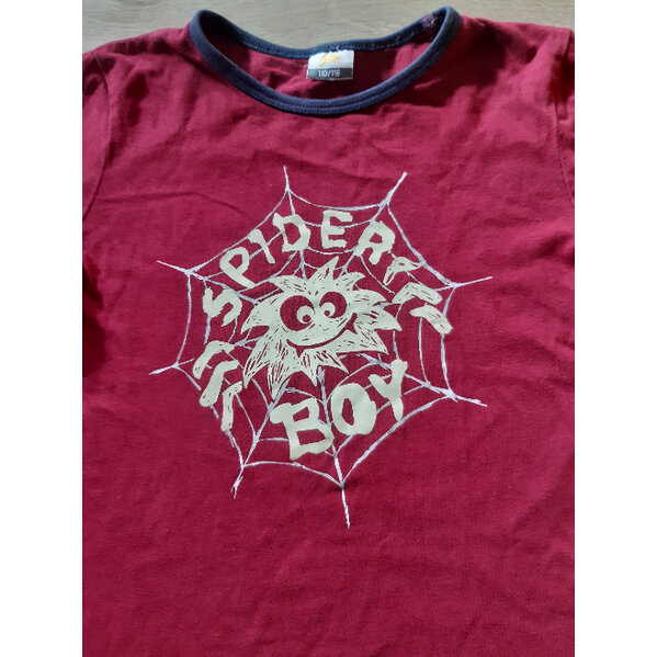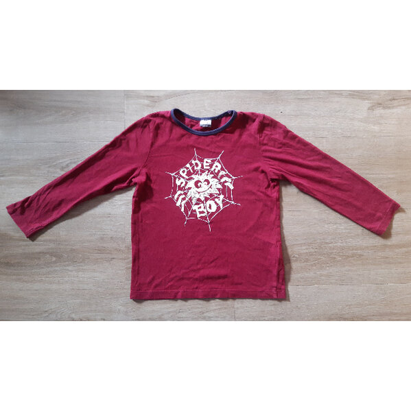 Bordeauxfarbenes Langarmshirt mit Spinnenmotiv, welches im Dunkeln leuchtet... Größe 110/116...