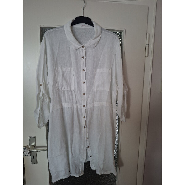 Wegen der neuen Regularien der Post versende nicht mehr an Postfächer oder Packstationen. Also bitte nicht anfordern, wenn ich nicht an die Privatadresse senden soll.Sehr schöne lange Bluse aus Leinen zum Drüberziehen