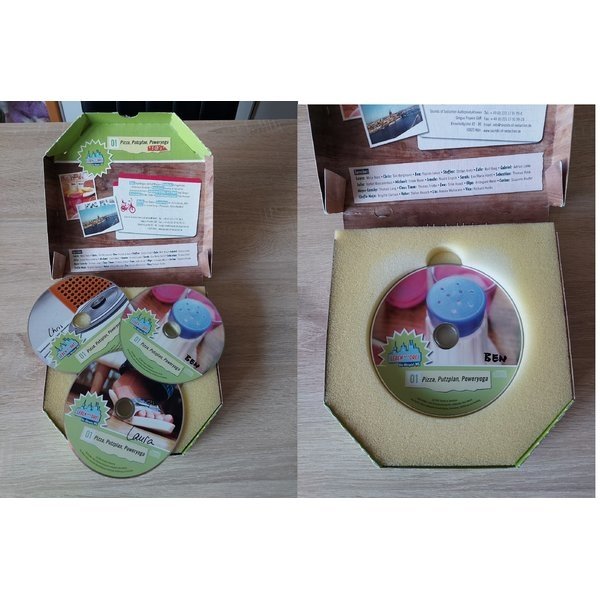 cooles Design in Form einer Pizza Schachtel! Ich habe auch die anderen beiden Folgen im Regal! :-)