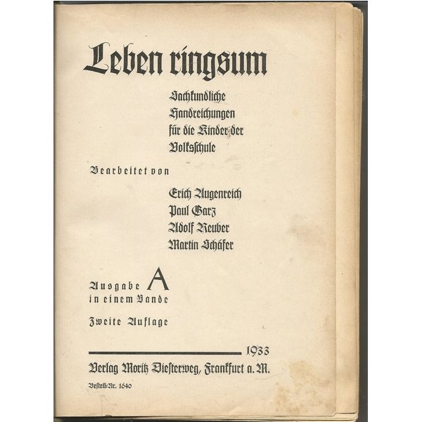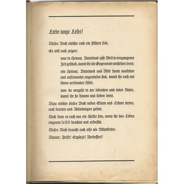 Geschichte 120 Seiten; Erdkunde 128 Seiten; Naturkunde 80 Seiten, Naturlehre 140 Seiten; Nachschlagewerk 29 Seiten