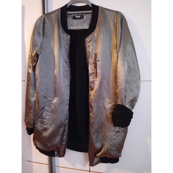 Biete hier eine tolle, etwas länger geschnittene Fliegerjacke/Bomberjacke /Jacket/ leichte Jacke mit goldenen Details. Pflegeleichte Maschinenwäsche. Wahrscheinlich ist eine Sendung per BüWa möglich oder per Großbrief. Bitte nicht an eine Packstation. Privatabgabe, keine Garantie, kein Umtausch keine Rücknahme. Kein Ersatz bei Verlust während der Zustellung.