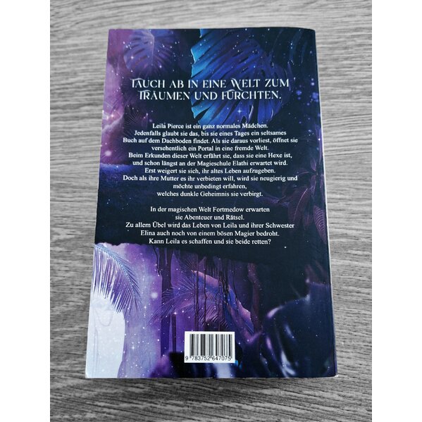 eila Pierce ist ein ganz normales Mädchen. Jedenfalls glaubt sie das, bis sie eines Tages ein seltsames Buch auf dem Dachboden findet. Als sie daraus vorliest, öffnet sie versehentlich ein Portal in eine fremde Welt. Beim Erkunden dieser Welt erfährt sie, dass sie eine Hexe ist, und schon längst an der Magieschule Elathi erwartet wird. Erst weigert sie sich, ihr altes Leben aufzugeben. Doch als ihre Mutter es ihr verbieten will, wird sie neugierig und möchte unbedingt erfahren, welches dunkle Geheimnis sie verbirgt. In der magischen Welt Fortmedow erwarten sie Abenteuer und Rätsel. Zu allem Übel wird das Leben von Leila und ihrer Schwester Elina auch noch von einem bösen Magier bedroht. Kann Leila es schaffen und sie beide retten?