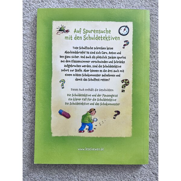 Tote Schulfische schreiben keine Abschiedsbriefe! Da sind sich Caro, Anton und Ben ganz sicher. Und auch als plötzlich Jacken spurlos aus dem Klassenzimmer verschwinden und Schränke aufgebrochen werden, sind die Schuldetektive sofort zur Stelle. Aber können es die drei auch mit einem echten Schokomonster aufnehmen und damit das Schulfest retten?