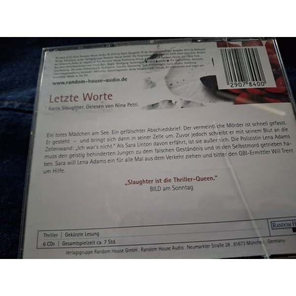 6 CDs. Ein totes Mädchen am See. Ein gefälschter Abschiedsbrief. Der vermeintlische Mörder ist schnell gefasst. Er gesteht - und bringt sich dann in seiner Zelle um. Zuvor jedoch schreibt er mit seinem Blut an die Zellenwannd: "Ich war's nicht." Als Sara Linton davon erfährt, ist sie außer sich. Die Polizistin Lena Adams muss den geistig behinderten Jungen zu dem falschen Geständnis un in den Selbstmord getrieben haben. Sara will Lena Adams ein für alle Mal aus dem Verkerh ziehen und bittet den GBI-Ermittler Will Trent um Hilfe.