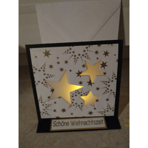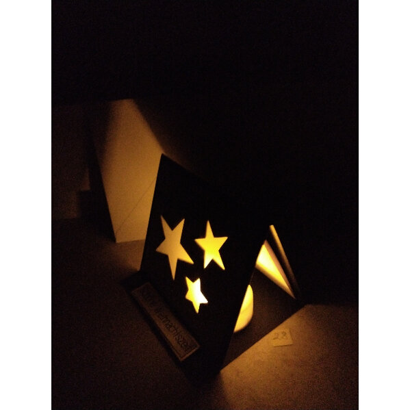 Wenn in die aufgestellte Karte ein elektrisches Teelicht gestellt wird,leuchten die Sterne