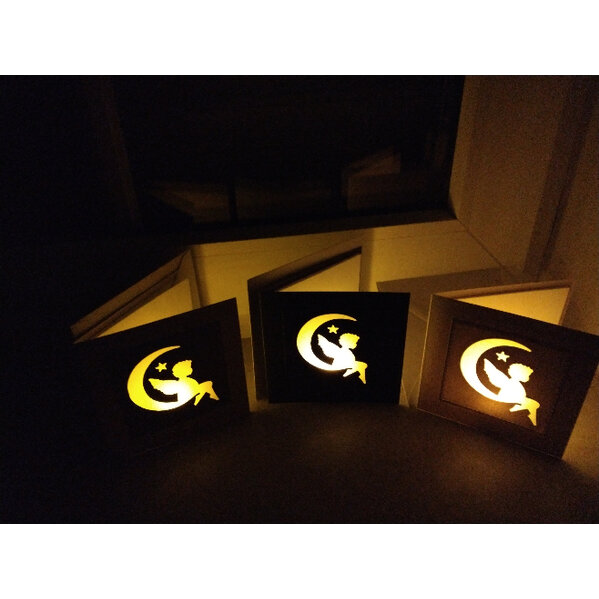 Wenn in die geöffnete Karte ein elektrisches Teelicht gestellt wird leuchtet der Engel.Mit Einlegeblatt und Umschlag