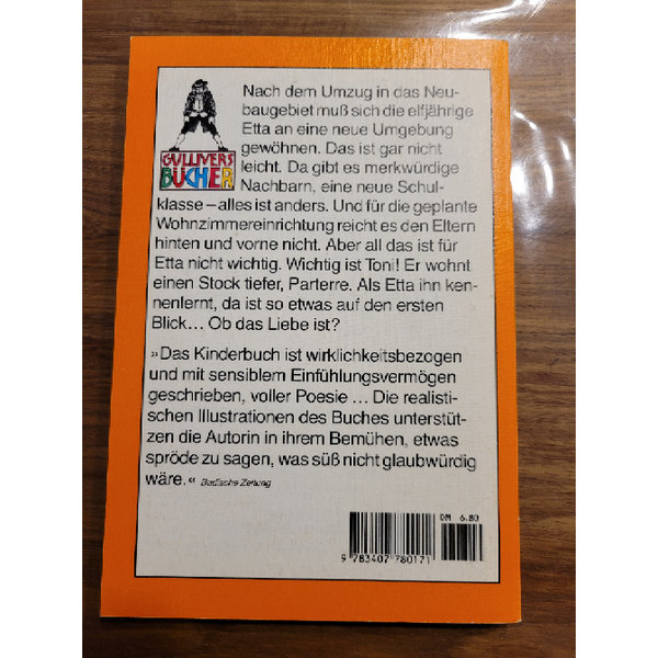Nach dem Umzug in das Neubaugebiet muß sich die elfjährige Etta an eine neue Umgebung gewöhnen. Das ist gar nicht leicht. Da gibt es merkwürdige Nachbarn, eine neue Schulklasse - alles ist anders. Und für die geplante Wohnzimmereinrichtung reicht es den Eltern vorne und hinten nicht. Aber all das ist für Etta nicht wichtig. Wichtig ist Toni! Er wohnt einen Stock tiefer, Parterre. Als Etta ihn kennenlernt, da ist so etwas auf den ersten Blick. ob das Liebe ist?