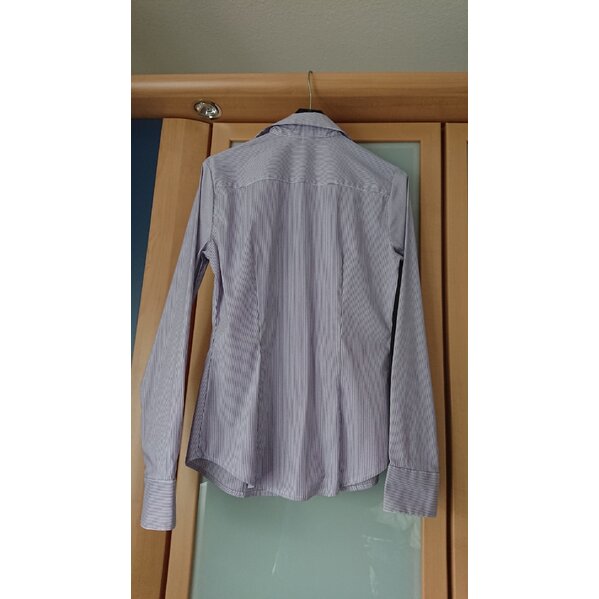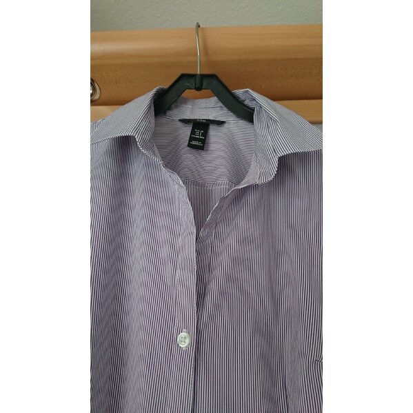 Lila-weiß-gestreifte Bluse von H&M. Toller taillierter Schnitt, passt sich durch den Stretchanteil gut an den Körper an.
