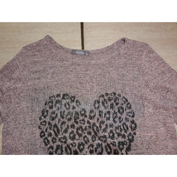 llängeres, edles Oberteil mit Leomuster-Herz und dezent silbernen Akzenten