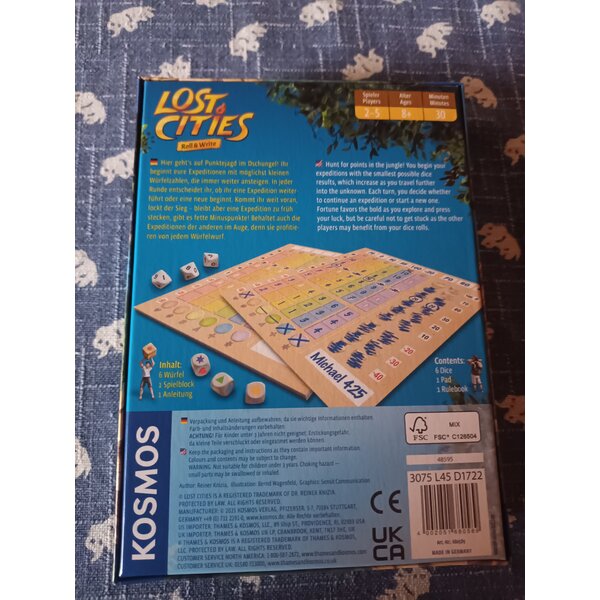 Das bekannte Spiel Lost Cities in einer neuen Variante als Würfelspiel