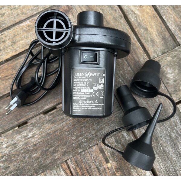 Für Luftmatratzen, Wasserspielzeug, Planschbecken etc., mit Aufsätzen in 3 Größen, kann aufblasen und absaugen
