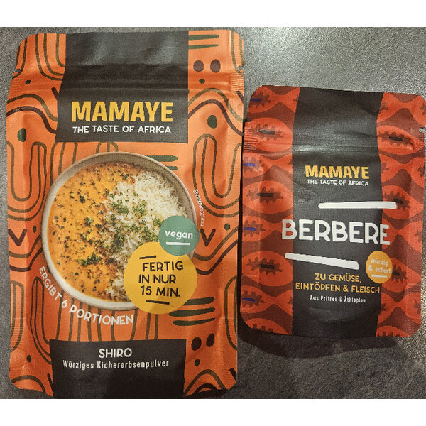 1x Shiro Würziges Kichererbsenpulver Vegan. Ergibt 6 Portionen. 1x Berbere Gewürz 50g. Genuss aus Eritrea und Athiopien