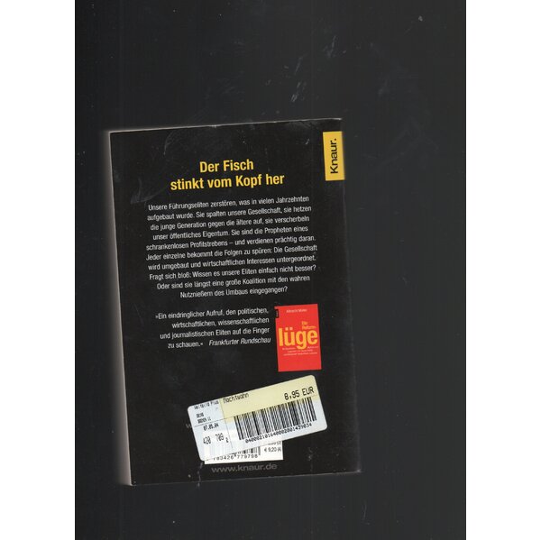 Ein Netzwerk mittelmäßiger Eliten droht uns zugrunde zu richten. Es sind dieselben, die uns seit Jahr und Tag einreden, dieses Land sei am Ende, damit sie ihr Ideal einer Wirtschaft ohne Regeln besser durchpeitschen können – dabei haben sie die Zustände selbst verursacht, die sie so lauthals beklagen. Es sind die Führungskräfte aus Politik und Publizistik, aus Wissenschaft und Wirtschaft, und sie sind rücksichtslos zerstörerisch. Albrecht Müller beschreibt, wie das Netzwerk des Mittelmaßes funktioniert, benennt die Verantwortlichen, enthüllt ihre Motive und belegt die Strategie, der sie folgen. Damit wir wissen, mit wem wir es zu tun haben.