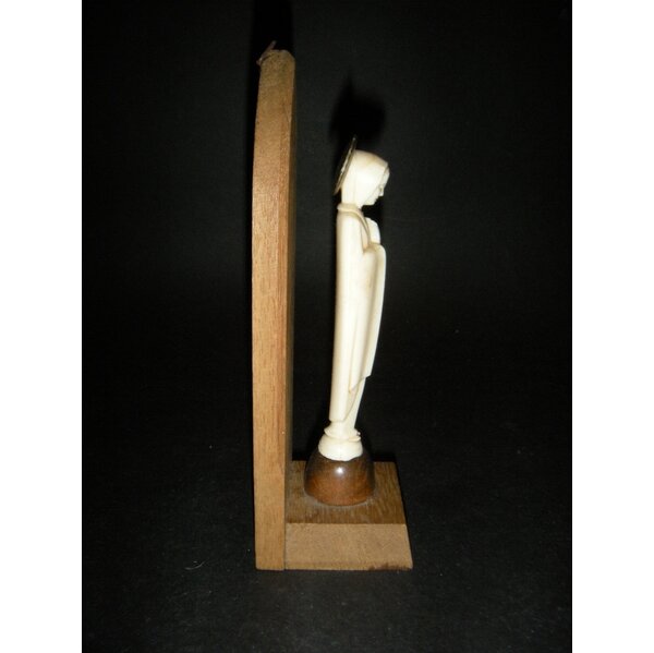 True Vintage - Uralte Madonna Figur auf Holzsockel, mit Aufhänger an der Rückseite, zierliche Darstellung der Maria. Zum Material kann ich nichts sagen, keine Punze oder Hersteller erkennbar.