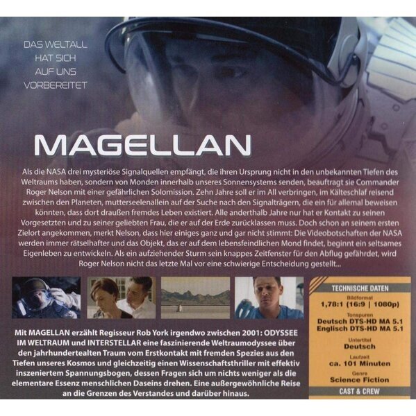 Mit 'Magellan' (2017) erzählt Regisseur Rob York irgendwo zwischen Stanley Kubricks '2001 - Odyssee im Weltraum' (1968) und Christopher Nolans 'Interstellar' (2014) eine faszinierende Weltraumodyssee über den jahrhundertealten Traum vom Erstkontakt mit fremden Spezies aus den Tiefen unseres Kosmos und gleichzeitig einen Wissenschaftsthriller mit effektiv inszeniertem Spannungsbogen, dessen Fragen sich um nichts weniger als die elementare Essenz menschlichen Daseins drehen. Eine außergewöhnliche Reise an die Grenzen des Verstandes und darüber hinaus.
