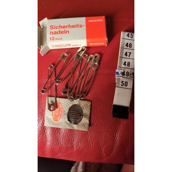 Siehe Bilder, Maßband, Nadeln und Sicherheitsnadeln