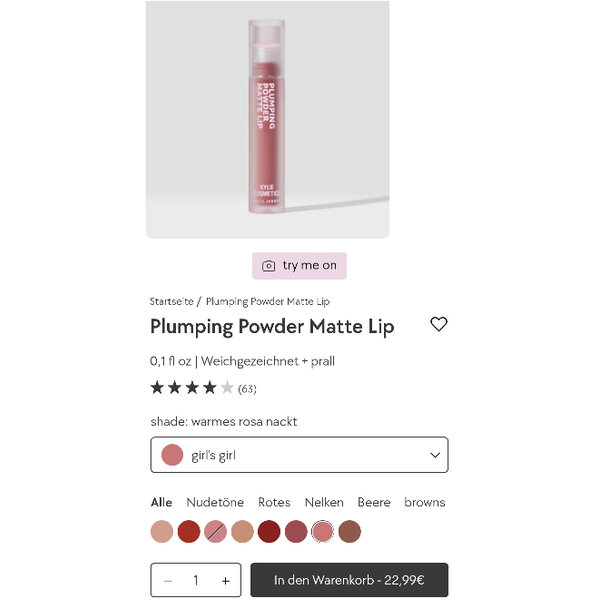 Langanhaltender, matter Lippenstift von Kylie Jenner, super angenehm aufzutragen, eine Traumtextur. Leider nicht meine Farbe. NP: 23€