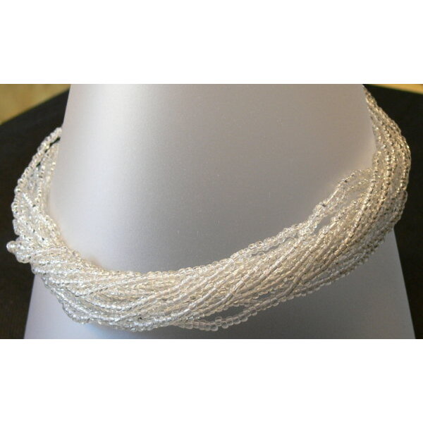 Von mir gefertigte Kette aus vielen Strängen kleiner, transparenter Glasperlchen.