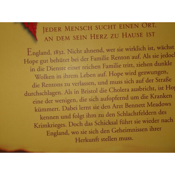 England, 1832. Nicht ahnend, wer sie wirklich ist, wächst Hope gut behütet bei der Familie Renton auf. Als sie jedoch in die Dienste einer reichen Familie tritt, ziehen dunkle Wolken in ihrem Leben auf. Hope wird gezwungen, die Rentons zu verlassen und muss sich auf der Straße durchschlagen. Als in Bristol die Cholera ausbricht, ist Hope eine der wenigen, die sich aufopfernd um die Kranken kümmert. Dabei lernt sie den Arzt Bennett Meadows kennen und folgt ihm zu den Schlachtfeldern des Krimkrieges. Doch das Schicksal führt sie wieder nach England, wo sie sich den Geheimnissen ihrer Herkunft stellen muss.