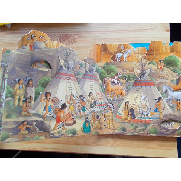 6 teiliges Leporello, beidseitig mit Indianermotiven + - geschehnissen. Ideal zum gemeinsamen angucken + Gespräch.