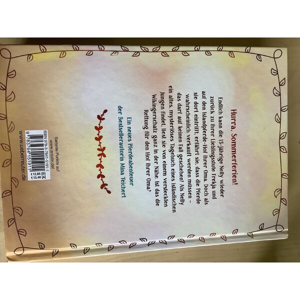 in neues Pferdeabenteuer ab 10 Jahren von Spiegel-Bestseller-Autorin Mina Teichert mit einer der beliebtesten Pferderassen überhaupt: Isländer! Endlich Sommerferien! Wie jedes Jahr freut sich die 15-jährige Nelly auf die Zeit auf dem Islandpferde-Hof ihrer Oma. Doch diesmal ist alles anders: ihre nervige Cousine Aurelie und der besserwisserische Praktikant Matti sind auch da und Nelly erfährt, dass ihre Oma vielleicht ihre Pferde verkaufen muss! Ihren einzigen Trost findet sie in dem mysteriösen Tagebuch des Jungen Nonni, der einst von Island herzog. In diesem findet Nelly ein Rätsel, das zu einem versteckten Wikingerschatz führen soll. Ist das die Rettung für den Hof ihrer Oma? Die perfekte Sommerlektüre für alle, die Pferde lieben – von der Autorin von „Ein Sommer zum Pferdestehlen“!
