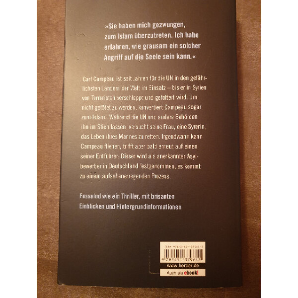 Carl Campeau ist seit Jahren für die UN in den gefährlichsten Ländern der Welt im Einsatz. Bis er in Syrien von Terroristen der al-Nusra-Front entführt wird und einen unvorstellbaren Horror erlebt. Er wird verschleppt, eingesperrt und psychisch gefoltert. Campeau kämpft täglich gegen die Verzweiflung und seine Frau, eine Syrerin, versucht über Telefon und Skype das Leben ihres Mannes zu retten. Irgendwann kann Campeau fliehen und für ihn beginnt der lange Weg zurück ins Leben. Dieser Weg kreuzt sich auf spektakuläre Weise erneut mit einem seiner Geiselnehmer: Dieser wird als anerkannter Flüchtling in Deutschland festgenommen. Es kommt zu einem aufsehenerregenden Prozess, der durch die internationalen Medien geht. Für Campeau ist dieser Prozess ein weiterer Kampf, den er durchstehen muss. Neben dem Trauma der Entführung ist es besonders die Zwangskonversion zum Islam, die ihn zutiefst geprägt hat...