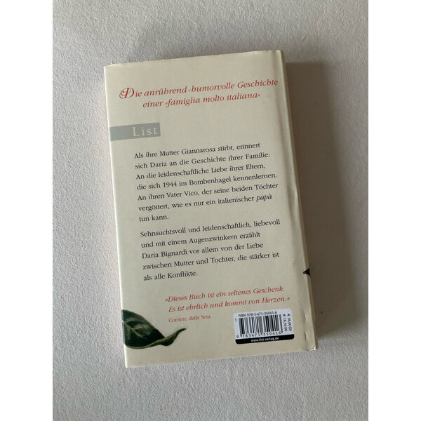 Als ihre Mutter Giannarosa stirbt, erinnert sich Daria an die Geschichte ihrer Familie: An die leidenschaftliche Liebe ihrer Eltern, die sich 1944 im Bombenhagel kennenlernen. An ihren Vater Vico, einen Kavalier alter Schule, der seine beiden Töchter vergöttert, wie es nur ein italienischer papà tun kann. An Micione, den Kater (und Ersatzbruder), der immer auf dem Fernseher schläft. An all die Kleinigkeiten, Chaos und Liebe, die aus einer normalen Familie etwas ganz besonderes machen.
