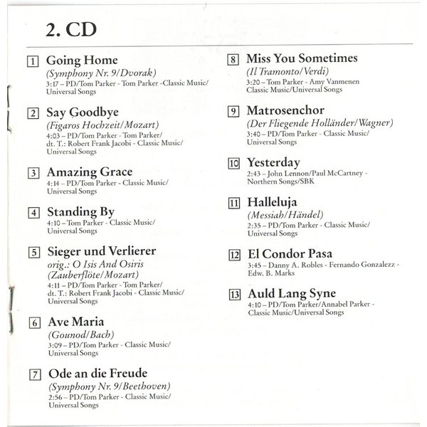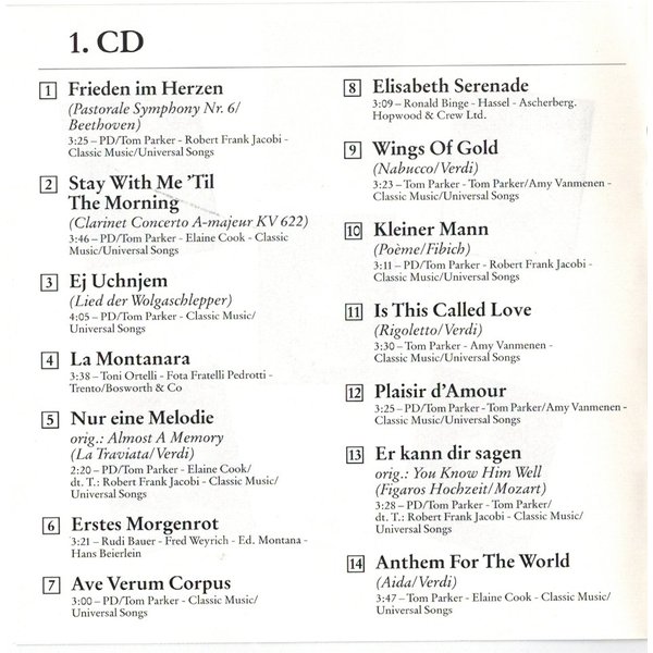 Bach; Beethoven; Brahms; Dvorak; Faure; von Gluck; Händel; Medelsson; mozart; Onslow; Paganini; Saint-Sawns; Schubert; Schumann; Telemann; Vivaldi