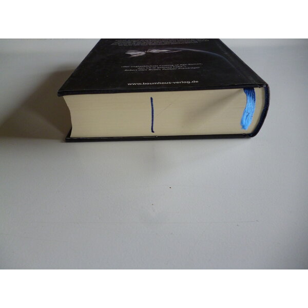 Der Schutzumschlag hat an den Ecken und Kanten Abschabungen. Buch hat am unteren Buchschnitt einen dunklen Strich (siehe Foto), leicht schief gelesen.