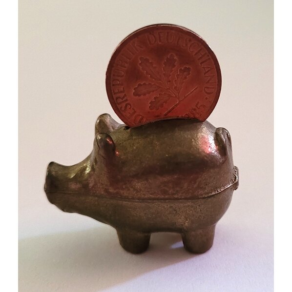 Glück kann jeder gebrauchen!! Hier ein Glücksbringer, ein kleines Schweinchen mit einem Glückspfennig aus dem Jahr 1985.