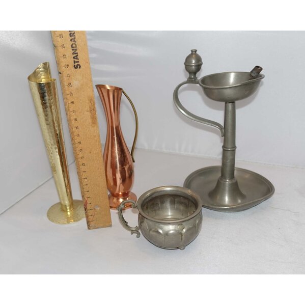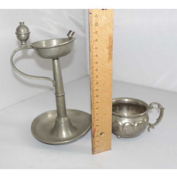 die Art des Metalls kann ich leider nicht bestimmen. Ich habe keine Stempel entdeckt. DIe Öllampe scheint leicht verbogen. sollte poliert werden