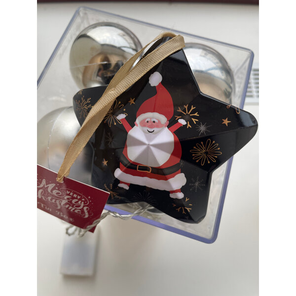Süße Metalldose in Sternform mit einem Weihnachtsmannmotiv