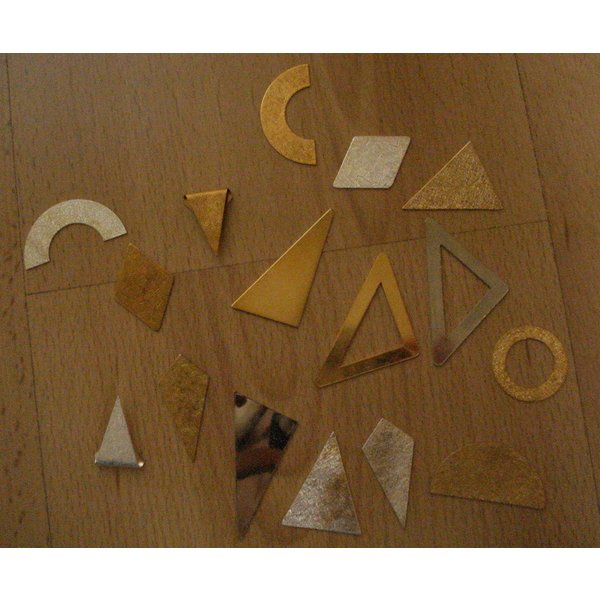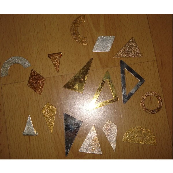 Die einzelnen Ringe, Dreiecke, Röhrchen usw. werden mit Kleber zusammengeklebt und mit Steinen, Strasssteinen, Ketten, Ringen, Perlen, Perlmutt usw. verziert.