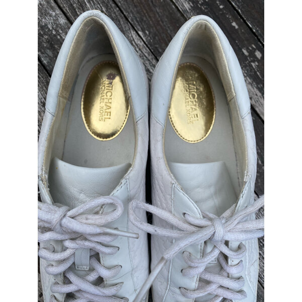Schöne Sneakers aus echtem Leder mit den typischen Michael Kors Logos. Schnürsenkel wurden ausgetauscht. Eher für schmale Füße geeignet, passen auch bei Gr 42