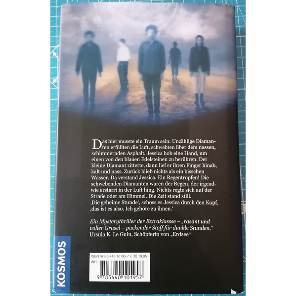 Das hier musste ein Traum sein: Unzählige Diamanten erfüllten die Luft, schwebten über dem nassen, schimmerndem Asphalt. Jessica hob eine Hand, um einen von den blauen Edelsteinen zu berühren. Der kleine Diamant zitterte, dann lief er ihren Finger hinab, kalt und nass. Zurück blieb nichts als ein bisschen Wasser. Da verstand Jessica. Ein Regentropfen! Die schwebenden Diamanten waren der Regen, der irgendwie erstarrt in der Luft hing Nichts regte sich auf der Straße oder am Himmel. Die Zeit stand still. "Die blaue Zeit" schoss es Jessica durch den Kopf, "das ist es also. Ich gehöre zu ihnen."