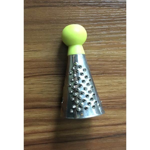 Kleine Reibe, 8cm hoch. Mit einer feinen, mittleren und groben Reibfläche. Gut für Muskatnuss, Schokolade oder Käse.