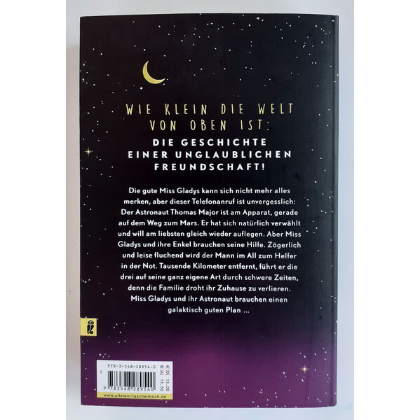 Die gute Miss Gladys kann sich nicht mehr alles merken, aber dieser Telefonanruf ist unvergesslich: Der Astronaut Thomas Major ist am Apparat, gerade auf dem Weg zum Mars. Er hat sich natürlich verwählt und will am liebsten gleich wieder auflegen. Aber Miss Gladys und ihre Enkel brauchen seine Hilfe. Zögerlich und leise fluchend wird der Mann im All zum Helfer in der Not. Tausende von Kilometern entfernt, führt er die drei auf seine ganz eigene Art durch schwere Zeiten, denn Familie Ormerod droht ihr Zuhause zu verlieren. Miss Gladys und ihr Astronaut brauchen einen galaktisch guten Plan …