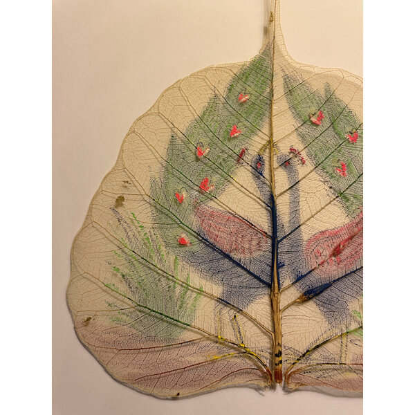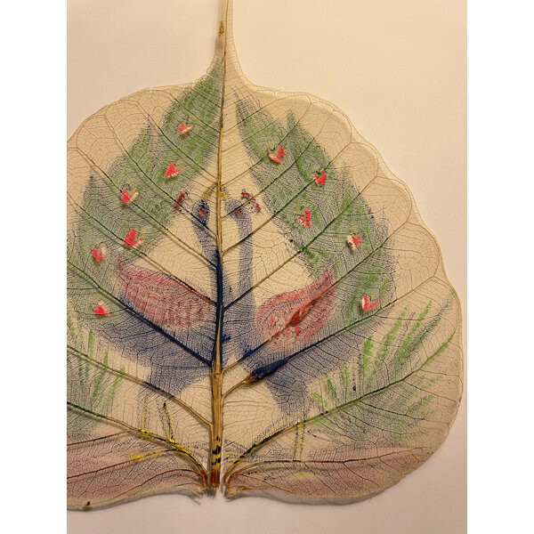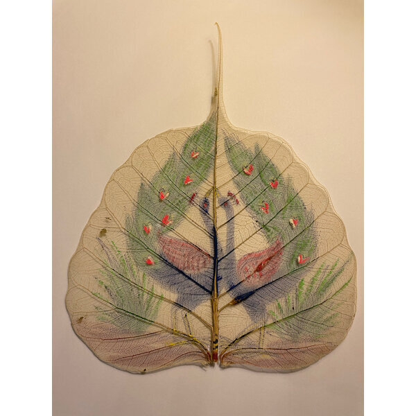 Blattgerippe halbtransparent mit 2 Pfauen bemalt. Älter, wurde in Schublade aufbewahrt. Eventuell zum Verbasteln oder Dekorieren.