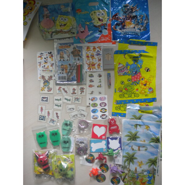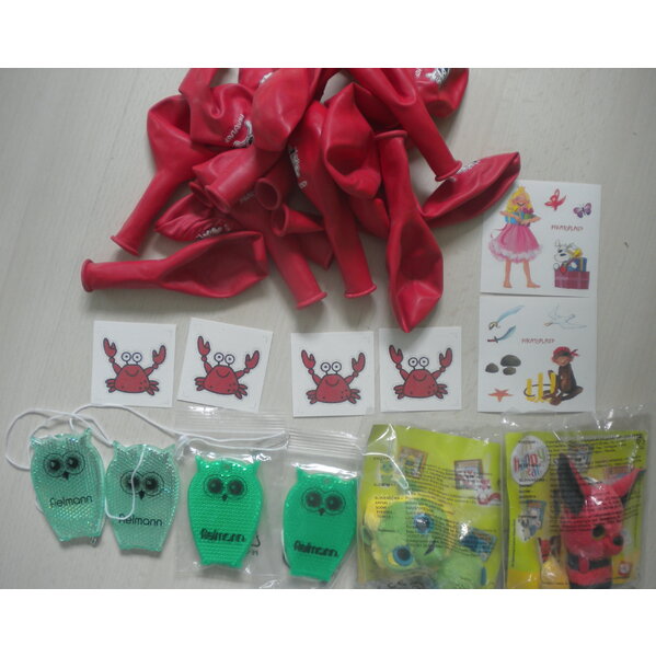 Ich biete hier allerlei Kleinspielzeug, Mitgebsel an. Für eine Kinder Party gut geeignet. Mit dabei: 4 Blinkis Eulen Reflektoren, rote Luftballons, Geschenktüten, viele Tattoos, Fingermonster, 2 Plüschtierchen, Aufkleber, Stifte,- einfach alles was auf den Bildern zu sehen ist