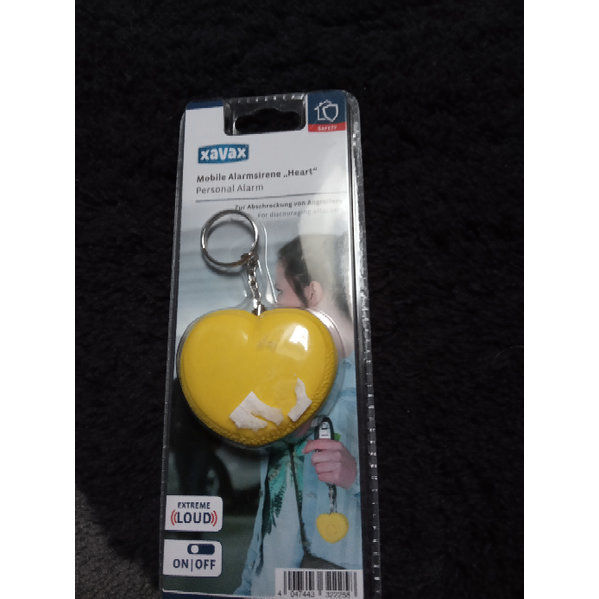 Xavax Mobile Alarm Sirene Herz mit Schlüsselanhänger Gelb