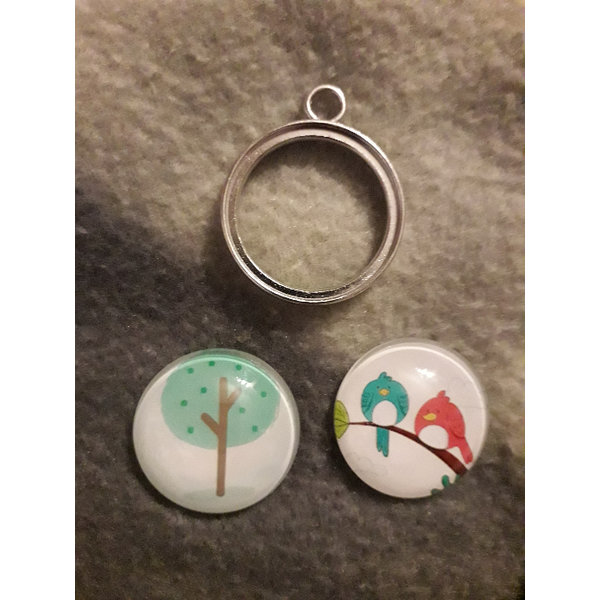 Modeschmuck silberner Anhänger 2 Glasnuggets Vogel Baum