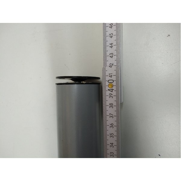 Gebrauchtes aber in sehr gutem Zustand befindlicher Möbelfuss aus Metall, rund, Farbe silber, Höhe 40cm / +0,5cm über schraubbare Kopfplatte, Durchmesser 5cm.