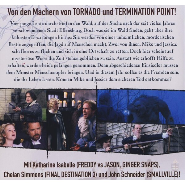 Vier junge Leute durchsteifen den Wald, auf der Suche nach der seit vielen Jahren verschwundenen Stadt Ellensburg. Doch was sie im Wald finden, geht über ihre kühnsten Erwartungen hinaus: Sie werden von einer unheimlichen mörderischen Bestie angegriffen, die Jagd auf Menschen macht. zwei von ihnen, Mike und Jessica, schaffen es zu fliehen und sich in eine Ortschaft zu retten. Doch hier scheint auf mysteriöse Weise die Zeit stehen geblieben zu sein. Anstatt wie erhofft Hilfe zu erhalten, werden beide gefangen genommen. Denn abgeschiedene Einsiedler müssen dem Monster Menschenopfer bringen. Und in diesem Jahr sollen es die Fremden sein, die ihr Leben lassen. Können Mike und Jessica dem sicheren Tod entkommen?