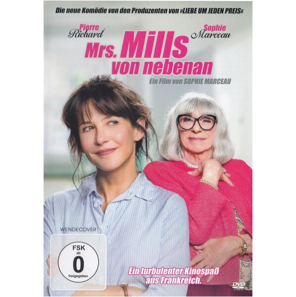 'Mrs. Mills von nebenan' (2018) ist eine erfrischende Komödie ganz im Stil von 'Mrs. Doubtfire' und Tootsie', von und mit Sophie Marceau (aus 'La Boum - Die Fete'). An ihrer Seite spielt der französische Superstar Pierre Richard (aus 'Der große Blonde mit dem schwarzen Schuh' oder zuletzt 'Monsieur Pierre geht online').