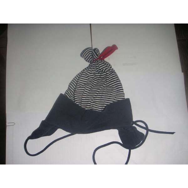 Lustige Mütze mit roter Schnür und praktischen Ohrenklappen.