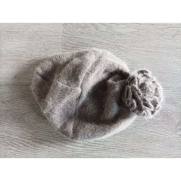 leichte, weiche, aber dennoch wärmende Mütze mit Gummizugbund und gropßer Stoffblüte, die seitlich getragen wird als Hingucker