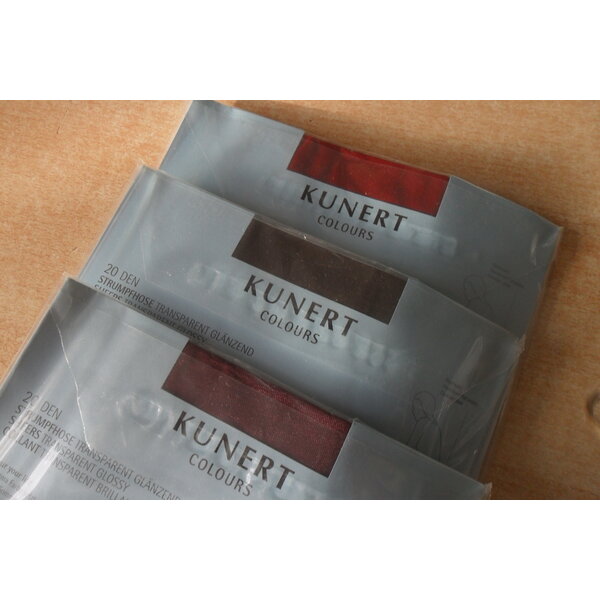 3 farbige Fein-Strumpfhosen in 20 den glänzend von Kunert in Grösse 44/46, weinrot, beere und braun, Details siehe Bilder